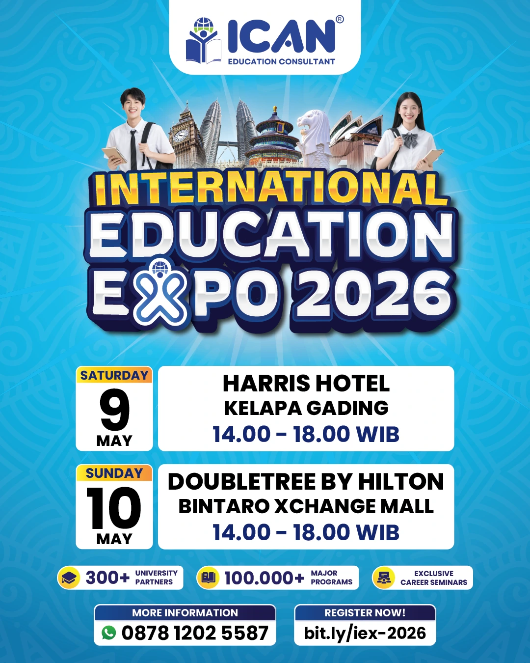 Berencana Kuliah di Luar Negeri? Ikuti Pameran Pendidikan Internasional Terbesar dan Terlengkap di Indonesia. Cari tahu dan dapatkan semua informasi mengenai Universitas impian kamu disini.